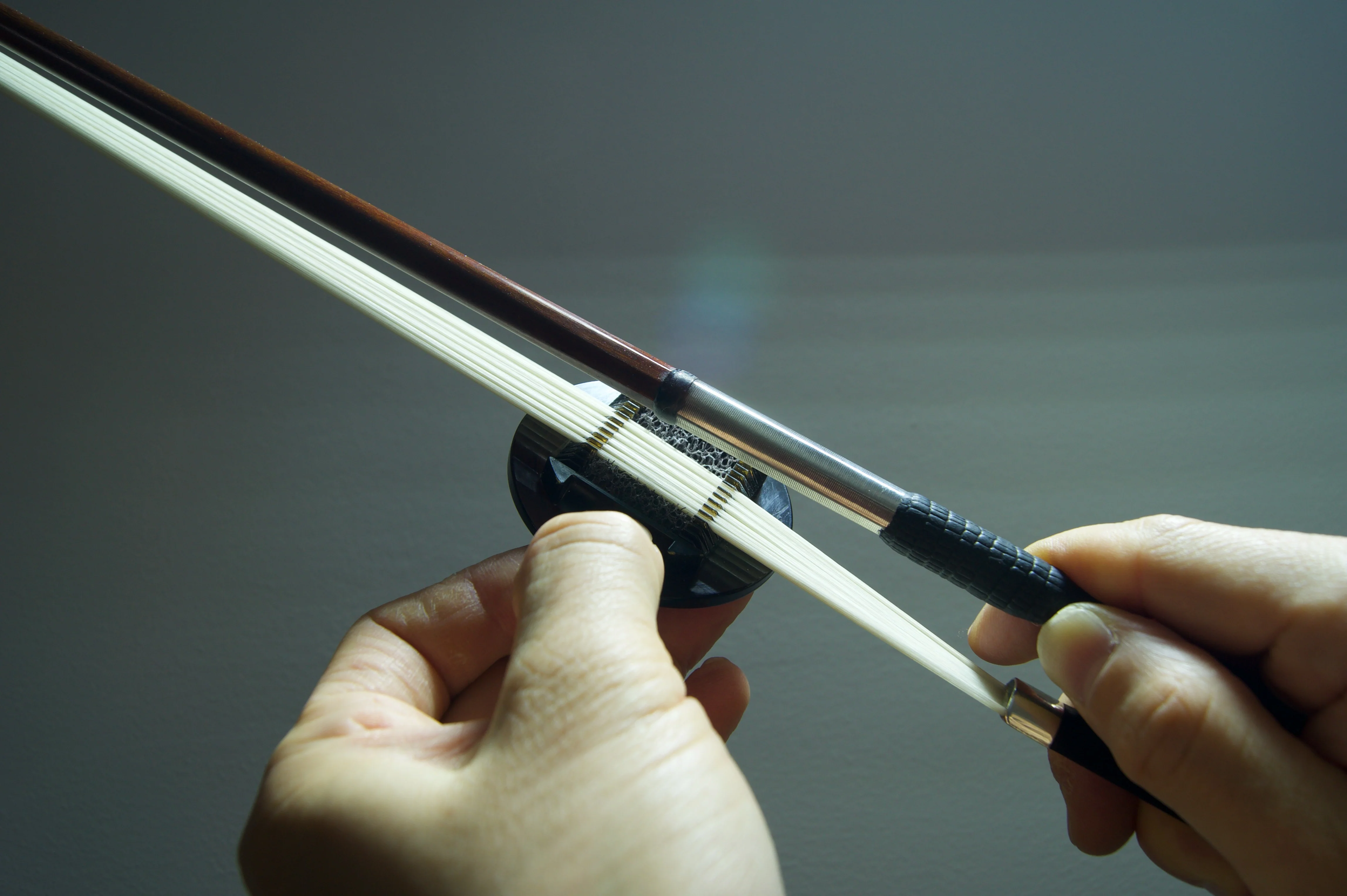 Sanctus is formulated to provide more possibilities in the sound of stringed instruments. This unique combination of two sophisticated rosin formulas provides the optimum balance for sound and bow control. These formulas have been put into two separate areas in one special rosin cake to show the clear definition of their roles. The outer ring formula has been designed to give a silky smooth playing feel and to produce a focused sound on the strings. The center formula responds and kicks in when the player demands more power and gutsiness from their instrument. The sound of these formulas when combined is noticeably more focused with enhanced tonal strength. Ultimately, it stimulates your musical mind to explore the endless possibilities in your sound.